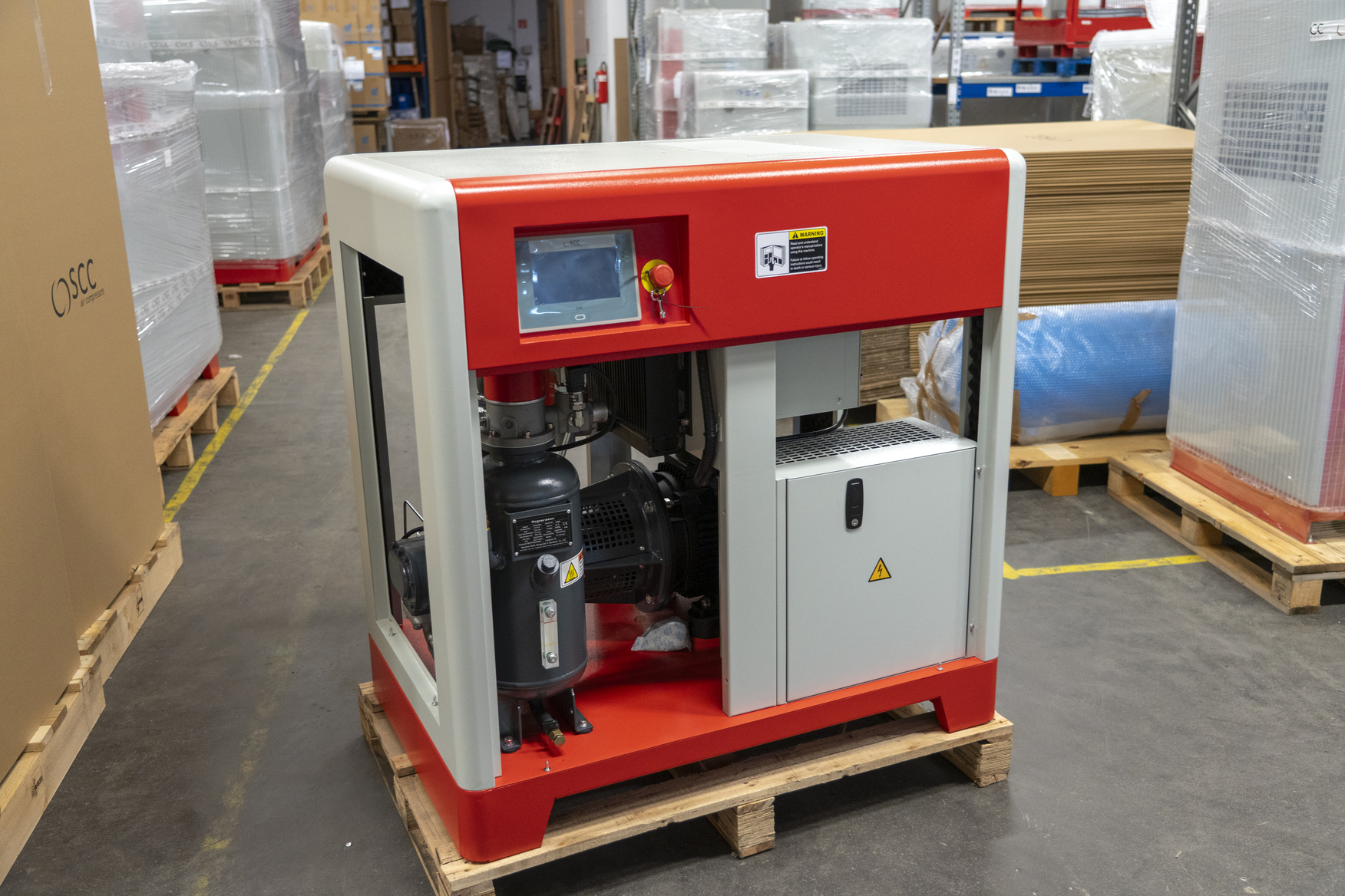 Durch moderne Bauweise und Permanentmagnetmotor ist STRONG deutlich platzsparender als klassische Anlagen – optimal für Betriebe in der Stadt oder mit kleinem Kompressorraum.